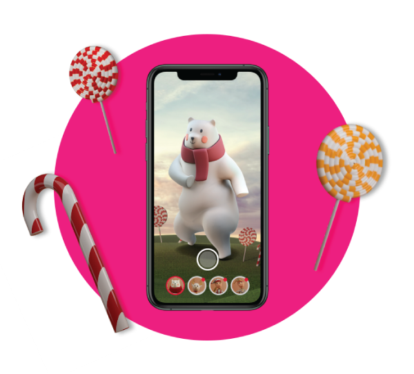For a Christmas campaign, an AR scanner was incorporated into the mall's active App. Posters and graphic media were placed in mall spaces, and when scanned with a smartphone, Christmas themed Augmented Reality experiences opened, complete with elves, bears and goblins.