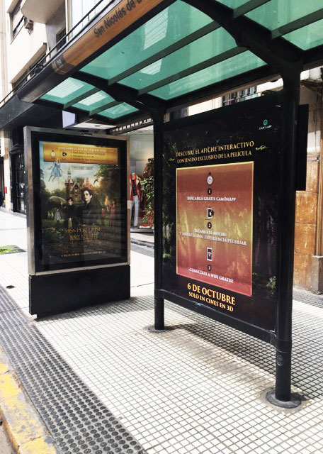 Para 20th Century FOX, CamOnApp y la agencia Vizeum, realizaron afiches interactivos con realidad aumentada en vía pública de la nueva película de Tim Burton “El Hogar de Miss Peregrine y los Niños Peculiares” que tuvo estreno en Argentina el 6 de octubre de 2016.