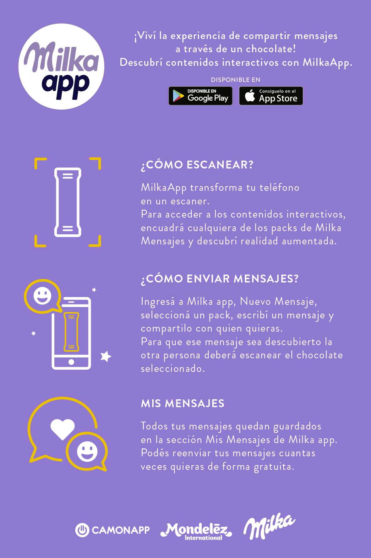 Milka App is free and available for download from Apple Store (iOS) and Google Play (Android).